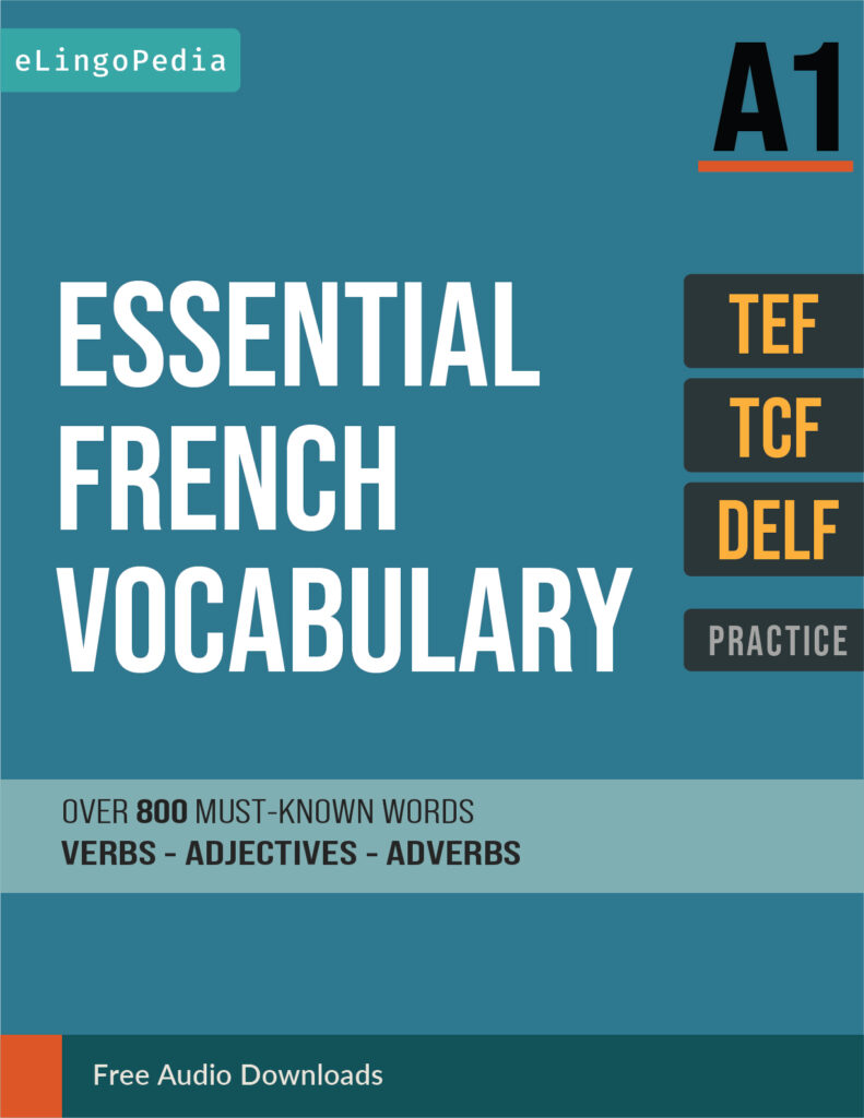 Essential French Vocabulary (A1 Level) is a beginner-level resource featuring 800 must-know French words—including verbs, adjectives, and adverbs—carefully selected for early learners. Each entry includes a clear example sentence, an English translation, and accompanying audio to support correct understanding and pronunciation. The book also includes four short reading texts to reinforce vocabulary in context, making it ideal for A1 learners and TEF, TCF, and DELF exam preparation.