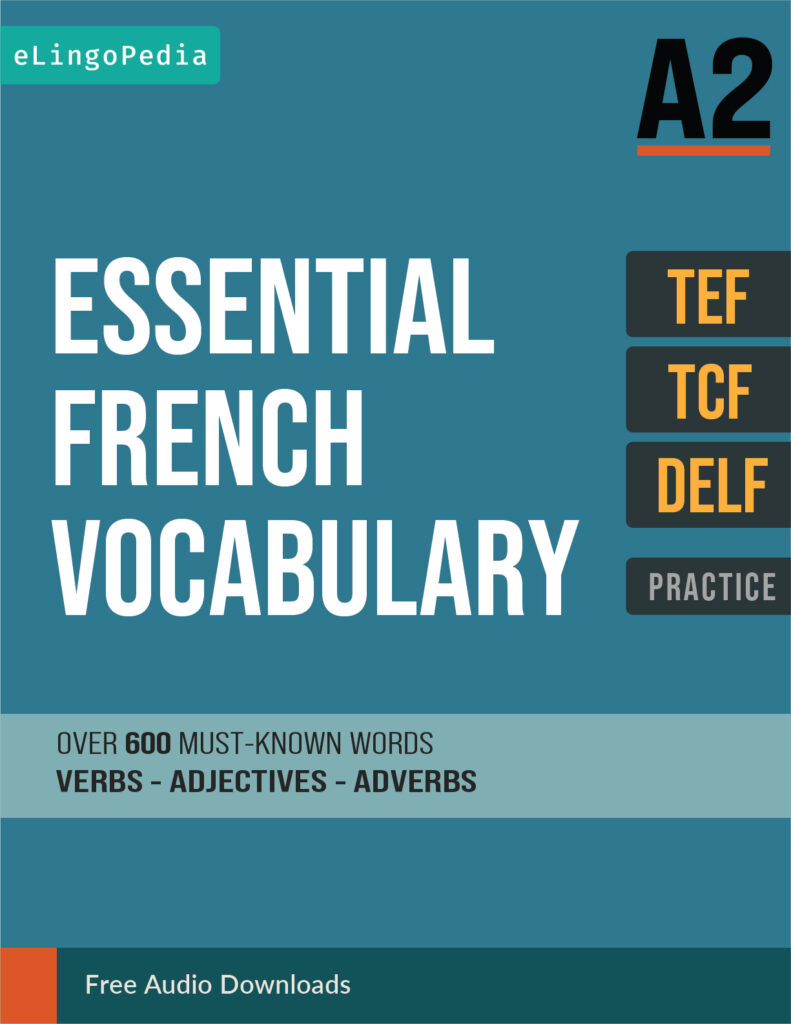 Essential French Vocabulary (A2 level) is an elementary-level resource designed to help learners expand their core French vocabulary. It includes 600 must-know words—covering verbs, adjectives, and adverbs—each presented with a clear example sentence, an English translation, and accompanying audio for accurate pronunciation. The book also features four short reading texts to reinforce vocabulary in context, making it well suited for A2 learners and TEF, TCF, and DELF exam preparation.