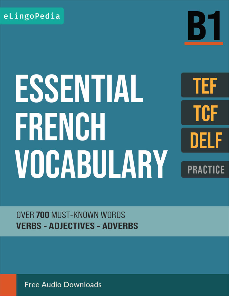 Essential French Vocabulary (B1 level) is an intermediate-level resource designed to strengthen and expand learners’ active French vocabulary. It includes over 700 must-know words—covering verbs, adjectives, and adverbs—each presented with a clear example sentence, an English translation, and accompanying audio for accurate pronunciation. The book also features four short reading texts to reinforce vocabulary in context, making it ideal for B1 learners and TEF, TCF, and DELF exam preparation.