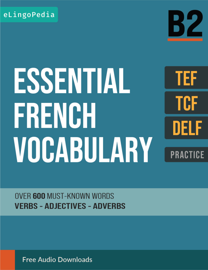 Essential French Vocabulary (B2 Level) is an upper-intermediate resource designed to refine and broaden learners’ French vocabulary. It includes 600 must-know words—covering verbs, adjectives, and adverbs—each presented with a clear example sentence, an English translation, and accompanying audio for accurate pronunciation. The book also features four short reading texts to reinforce vocabulary in context, making it well suited for B2 learners and TEF, TCF, and DELF exam preparation.